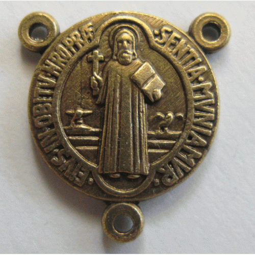 The Saint Benedict Medal is a Catholic sacramental medal containing symbols and text related to the life of Saint Benedict of Nursia. The medal is one of the oldest and most honoured medals used by Catholics. Due to the belief in its power against evil is also known as the "devil-chasing medal". As early as the 11th century, it may have initially had the form of Saint Benedict's cross, and was used by pope Leo IX. The reverse side of the medal carries the Vade retro satana ("Step back, Satan") formula which has been used by Catholics to ward off evil since the 15th century. Sometimes carried as part of the rosary, it is also found individually. It's widespread use followed its formal approval by pope Benedict XIV in the 18th century, the medal is used to ward off spiritual and physical dangers, especially those related to evil, poison, and temptation.